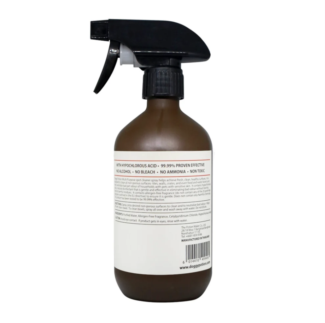 安全而有效的清潔劑,適用於所有家居範圍,包括任何貓狗弄污的地方、糧食碗、桌面或寵物籠輕易保持居家清新乾淨,快速中和室內異味,特別適合有敏感皮膚的寵物溫和配方,含天然消毒成份次氯酸,有效殺滅 99.99% 細菌採用植物性及可生物降解的界面活性劑,不含任何致敏原的香料,不會殘留有害物質採用 98% 天然溫和成份,低致敏性配方不含 SLS/SLES、漂白劑、阿摩尼亞、鄰苯二甲酸鹽、對羥基苯甲酸酯、甲醛和乙二醇溶劑泰國製造