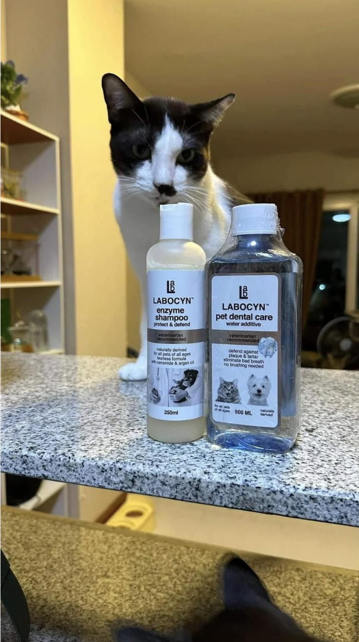 - 寵物潔齒飲用水,採用 100% 天然成份,促進毛孩口腔健康及衛生